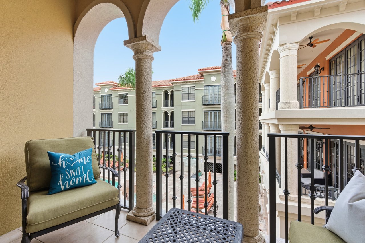 A true metropolitan lifestyle without the price tag. Life feels a little easier here ... where coffee, dining and shops are just steps away, yet your home remains quiet, private and framed by a beautiful view. This 3-bedroom, 2-bath residence offers one of the most private and desirable settings in The Residences at Coconut Point, positioned just above the pool yet tucked back for peace and quiet.
