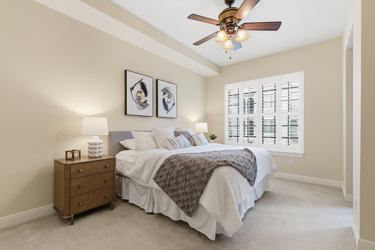 With nearly 1,400 sq. ft. under air, the great room features 10' ceilings, 8' solid-core doors, ceramic tile throughout the main living areas and plush carpet in the bedrooms. The kitchen includes granite countertops, stainless-steel appliances and a breakfast bar that opens to the living and dining spaces. The master suite offers a walk-in closet and a spacious bath with dual vanities, a soaking tub and a separate glass-enclosed shower. Two guest bedrooms share a full bath conveniently located off the main living area, making the floorplan ideal for hosting family or friends.