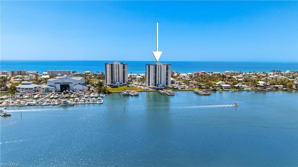 SOME CONDOS HAVE A WATER VIEW ... OCEAN HARBOR 805 IS SURROUNDED BY THEM. Panoramic bay and gulf views from every room. This fully furnished 2-bedroom, 2-bath condo delivers nearly 1,500 sq. ft. of open, light-filled living in one of Fort Myers Beach's most sought-after gated communities. The grand double-door entry sets the tone, but it's the bay view beyond the great room that truly welcomes you home. Formal dining that seats eight, a wet bar, built-in entertainment wall and an open central kitchen, unique to this unit. The enclosed lanai has been set up as a clubroom with unobstructed bay views. Watch dolphins play in the channel, pelicans glide over the mangroves and boats & fishermen work the waters of Estero Bay in Southwest Florida's most breathtaking natural settings. Just off the breakfast nook is a floor-to-ceiling glass seating area offering 180-degree views of the gulf, the town and the bay. In-unit laundry, a private storage locker and two assigned parking spots (one under the building) round out the package. Ocean Harbor residents enjoy direct beach access, on-site boat docks with slips available for purchase, a dedicated kayak & paddleboard launch and amenities including a pool and 2 spas, clubhouse, fitness center, 6 pickleball courts, 2 tennis courts, bocce ball, cornhole lawn and lush tropical landscaping. HOA includes insurance, high speed wireless internet, on-site property manager, landscaping, exterior pest control, water, trash and reserves. A private entrance connects directly to Publix, Snook Bight Marina and two favorite island restaurants, Junkanoo Below Deck and Fresh Catch Bistro with convenient access to the island trolley stop. One of the best values on Fort Myers Beach. Schedule your private showing today!
